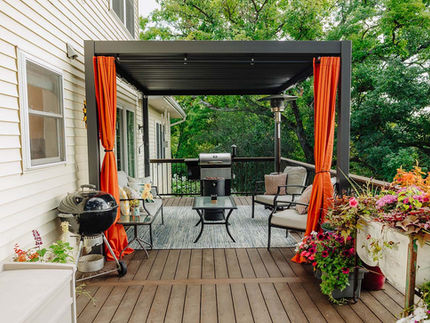 Green Shield's Modern Steel Black Adjustable Pergola offers a great contemporary design aesthetic for your deck. Featuring an adjustable louvered roof that allows homeowners direct sunlight or complete shade. Built to hold up to 12 inches of snow load from galvanized steel. The Green Shield Modern Steel Black Adjustable Pergola also comes with integrated drainage system that incorporates downspouts into the posts.